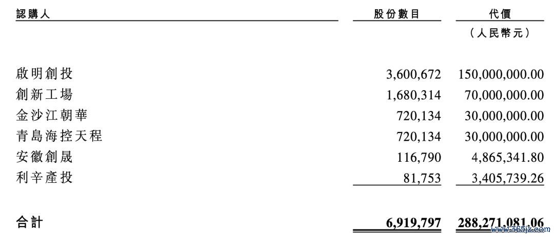具体来看,启明创投以1.5亿元的价格认购了360.07万股股份,创新工场以7000万元的价格认购了168.03万股股份,金沙江创投以及安徽、青岛两地国资机构也参与了融资。