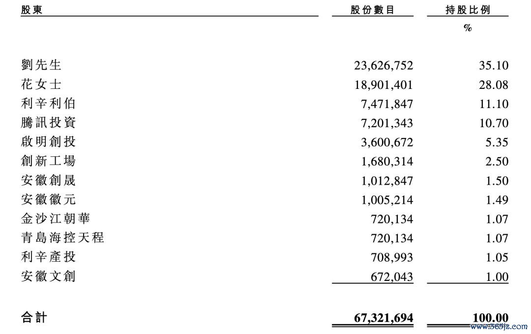 IPO前,公司创始人刘振及花敬玲夫妇共持股63.18%,利辛产投持有伯希和11.10%股份,腾讯投资持有伯希和10.70%的股份,启明创投持股比例也达到5.35%。
