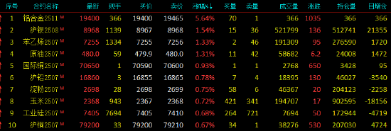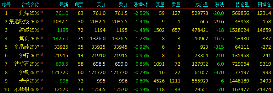 2025年6月10日,早盘开盘,国内期货主力合约涨跌不一。铸造铝合金涨超5%,沪银、苯乙烯、SC原油涨超1%。跌幅方面,焦煤、集运欧线跌超2%,纯碱、焦炭跌超1%。